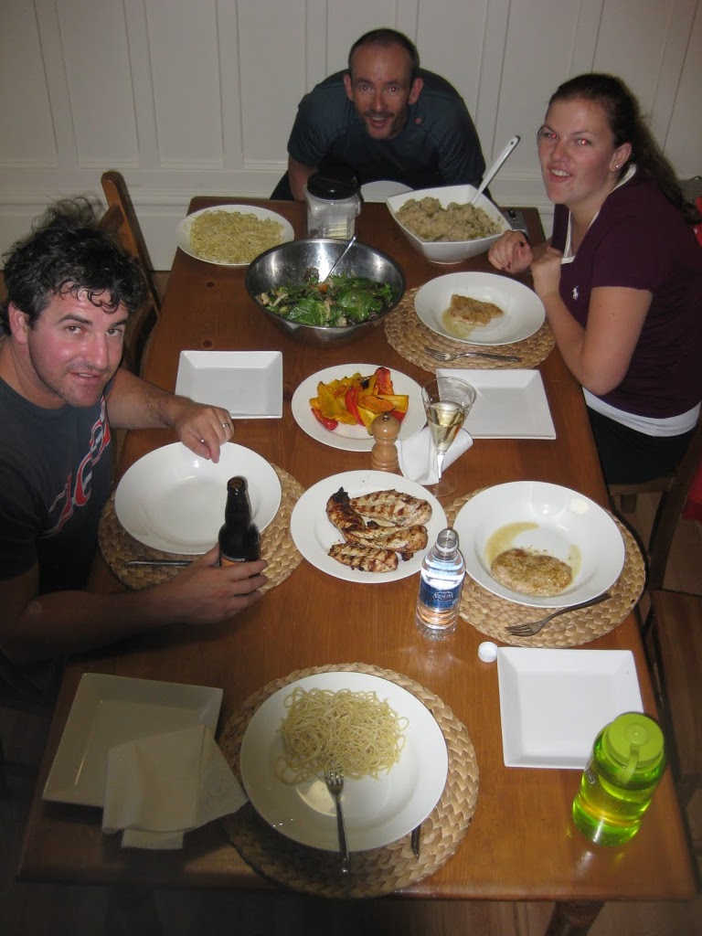 Last night, we cooked a big feast – salad, roasted peppers, spaghetti, excellent risotto (thanks to Mike) and some grilled chicken. Delicious! Drew came over to join Mike, Taylor and I. After dinner we went into Penticton to walk around the annual pre-Ironman street fair.
