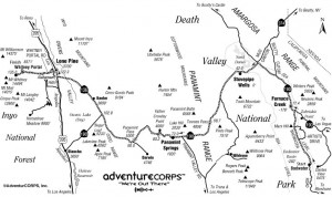 We had a crew of six, including me – Diane (Blake’s wife), Caroline (crew chief), Carlo (our “MG” the Marine), Craig (our documentarian) and Rickey (resident goofball :)). Everyone except Carlo flew into Las Vegas on Saturday and drove from there. I picked up Carlo at LAX and we drove together to meet everyone else at the Furnace Creek Ranch, our home for Saturday and Sunday nights.