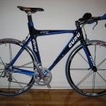 I picked up the bike today and it is awesome. I love it. Not that I’ve been on it for more than a few seconds on the trainer at Jackrabbit, but it looks incredible, is feather light and just plain makes me think “fast”! I couldn’t really get a good picture, but the pictures below…