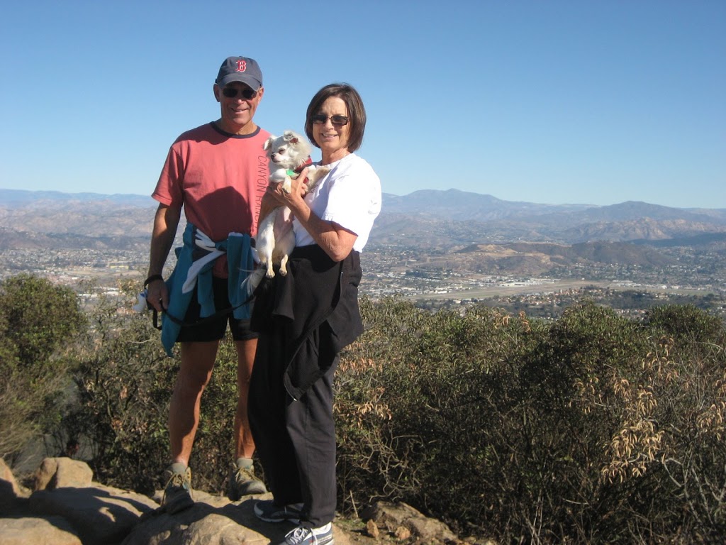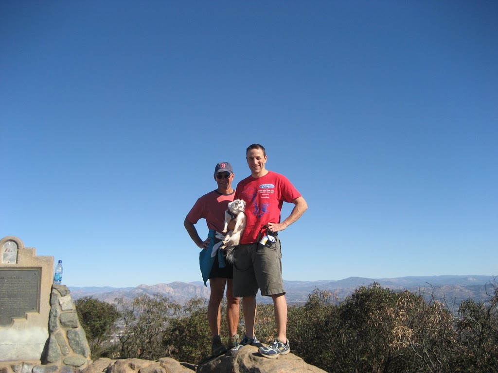 We’ve had some really nice family time, including an afternoon and evening with my grandparents, uncle, aunt and cousins. Mom, Dad, Charlie and I took a nice hike up Cowles Mountain on Thursday morning. It was a beautiful morning – sunny and not-too-warm. The entire hike is about one and a half miles each way and it’s not especially easy. Charlie was such a trooper, storming up the hill and jumping up steps taller than he is. From the top, you get a great view for miles around.