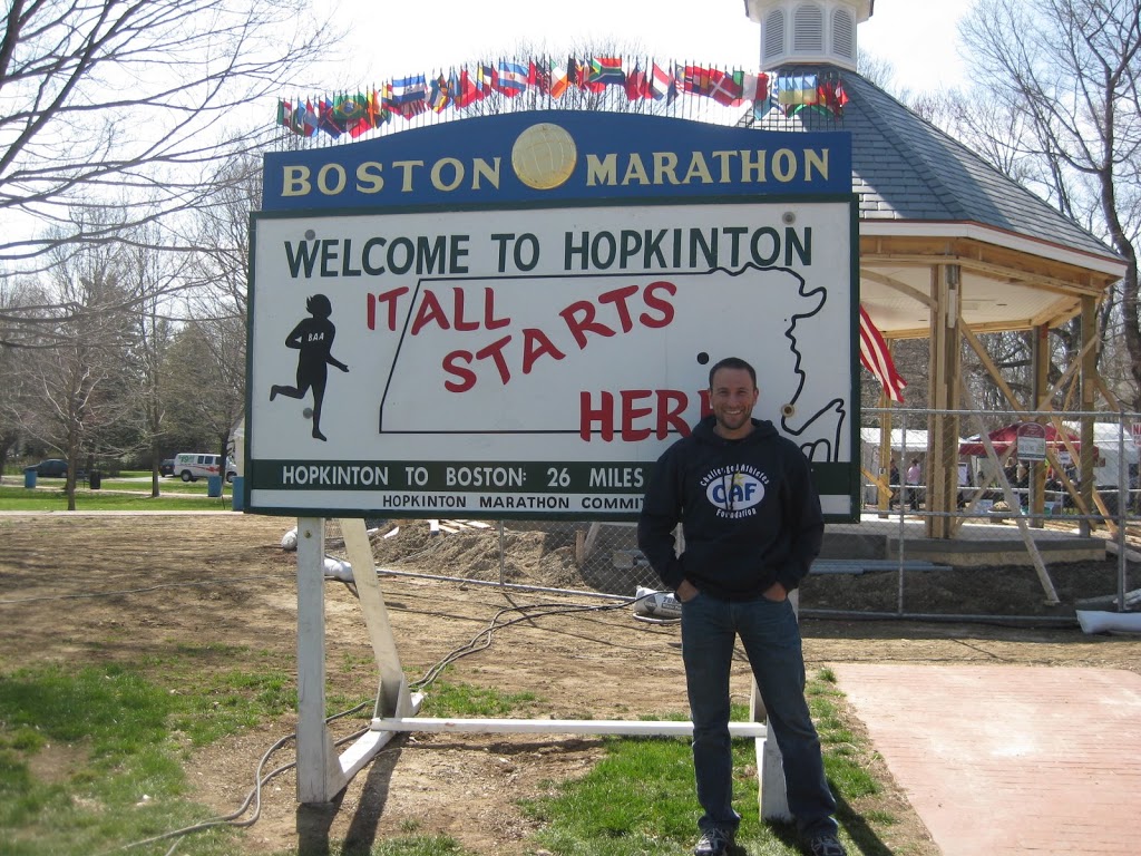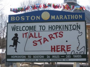 Today was a great day. I had a good breakfast with my Uncle Jim and then he took me downtown to meet up with a tour group for a bus tour of the course. Jim knows one of the tour guides, former marathoner, triathlete and all-around stud, Hal Gabriel. Hal’s done 100 marathon, including a streak of 24 Bostons, from the early 1960’s until the mid-1980’s. He also raced twice at Kona and has done numerous other races. He no longer runs, but now every year he organizes a cycling event on marathon morning where he and a group ride from Boston to Hopkinton and back along the course before the marathon begins. This year though, he’s staying in Hopkinton and riding back with the elite women as one of their escorts along the course. Very cool stuff. Anyway…