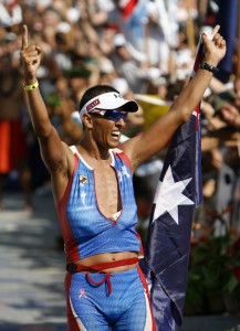 The 2007 Ironman World Championship (Kona, Hawaii) was on NBC today. It was an amazing race with male and female first time winners (that’s Chris McCormack, the men’s winner above; there’s an amazing picture of Chrissie Welllington, the women’s champ here). So it’s an appropriate day for me to announce that I’ve entered the lottery again. In April, 150 names are chosen at random from the lottery pool. My chances are really, really slim, but it’s worth the price to play. Of course, I’m also going to do my best at Lake Placid in July, but part of me thinks that my odds of getting in through the lottery are better than my chances of taking nearly two hours off last year’s Lake Placid results.