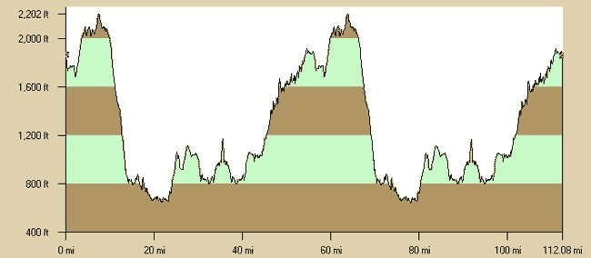 I finished the first loop in about 2:53. I had planned on taking it easy on the first loop. And I did. But obviously not easy enough, because the second loop pretty much kicked my ass. Each hill on the second loop felt steeper and longer than it had felt the first time around. I guess that makes sense given that by the time the real hills started for the second time, I was nearly 100 miles in!