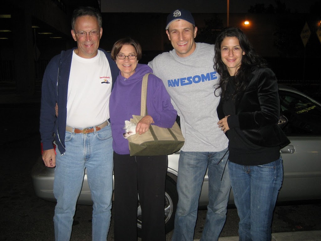 We flew back from California yesterday. We took off at 7:40AM and didn’t get home until nearly 6PM. Spending the entire day in the airplane is pretty beat, but we were fortunate to get upgraded and the flight was really easy. Elizabeth and I both slept for parts of the flight. Also, unlike the flight out there, Charlie slept just about the entire way. (The picture below is with my parents when they dropped us off at the airport.)