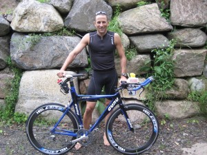 It’s grey and rainy out. It’s actually slowed down a bit now, but it was coming down pretty hard for most of the day. It was dry this morning and luckily I took the bike out for a ride first thing. I rode from the house through town and then did the first 14 or so miles of the course, including the climbs out of town and the descent into Keene. That descent is awesome – I rode a little conservatively and still saw my speedometer hit 43mph! It will be even better on race day when cyclists have a whole lane and can be less worried about the rough shoulder or the cars. I didn’t want to do any of the climbs so my dad picked me up at the bottom of the descent and drove me home (what a nice dad!). As we pulled into the driveway at the house, the rain started coming down. Pretty good timing.
