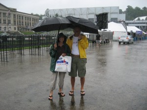 The Athlete Village wasn’t really open for business today. A few of the sponsors and companies had their tents up and running, but most were still setting up. Tomorrow, I imagine it will all kick into high gear. My soggy parents at the Athlete Village: