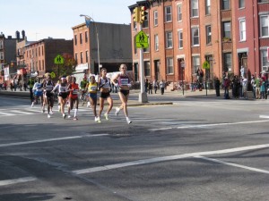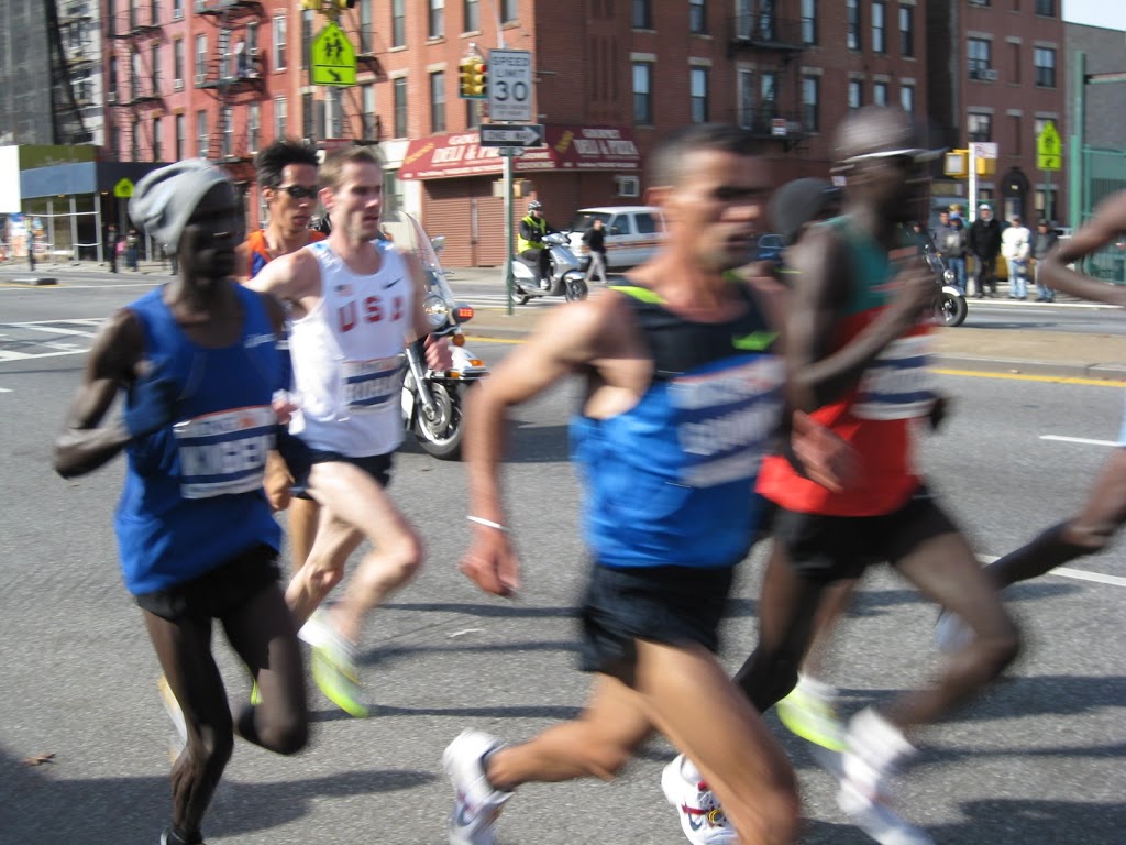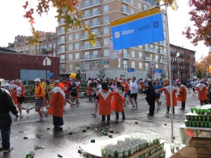 Some images from the marathon – the women’s lead pack, the men’s lead pack and volunteers handing out water and Gatorade around mile 7 in Park Slope, Brooklyn.